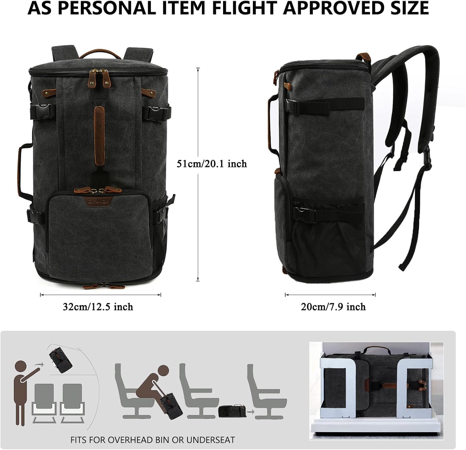 ★LARGE CAPACITY & FLIGHT APPROVED. The size of this large travel backpack is 51 x 32 x 20 cm (20.1 x 12.5 x 7.9 inches), Up to 40L travel backpack. Unique design and fashion, well made for weekend trip or international airplane travel, and the carry on backpack meets the most maximum size requirements, can be fit under the seat or overhead bin, travel backpack carry on flight approved.