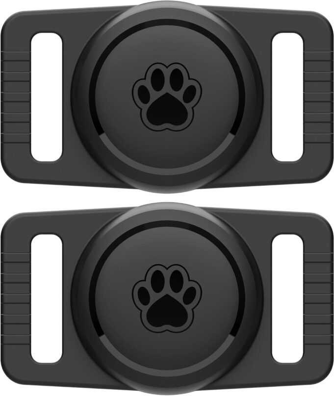 Easy Installation: Simply place the AirTag into the white silicone case, then insert the AirTag with the protective case (hollow side facing inward) into the AirTag collar holder. Pull it to both sides, and it will easily attach to your pet’s collar.