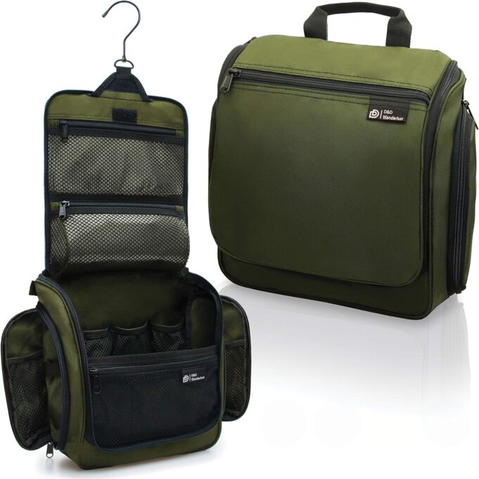Few things are as personal and versatile as the toiletries that people use. When designing this hanging toiletry bag we wanted to create one that could handle it all. It is large enough to fit full size toiletries (up to 9″ tall), but also has plenty compartments to keep smaller items like medicine and make up well organized and within easy reach.
