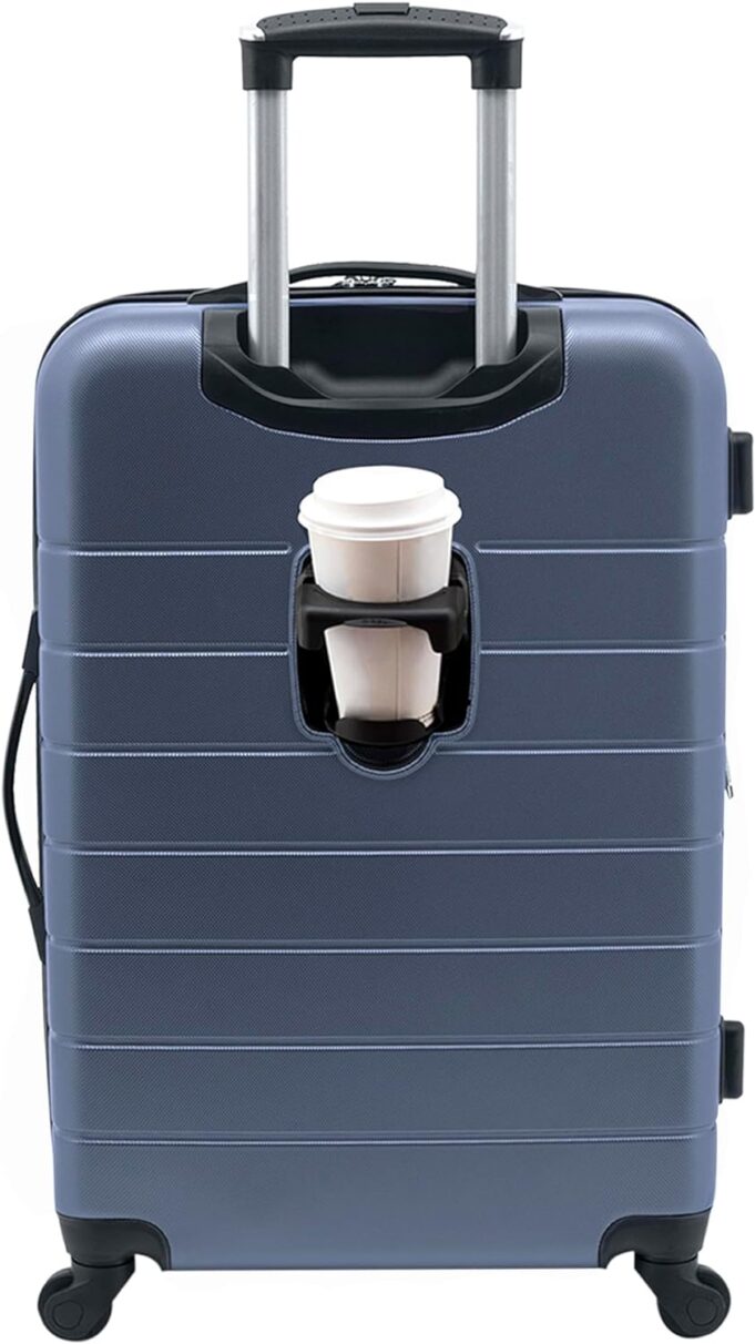 Featuring the Wrangler EL DORADO Smart Luggage set with the 3-in-1 Cup holder, phone holder, and USB port for charging devices. Battery pack is not included. Size options include 3 Piece Set (28″ Large check-in, 24″ Large check-in, 20″ Carry on) or standalone units. All sizes of the luggage have the 3-in-1 feature and come nested. Built for the ultimate convenient experience for the modern day traveler.