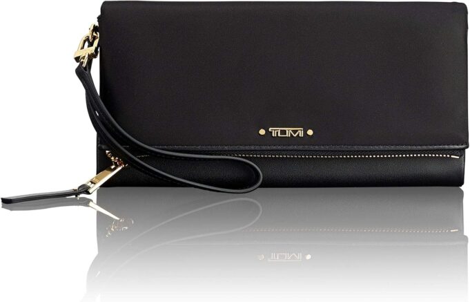 Premium Wristlet Wallet: The TUMI Voyageur Travel Wallet features a sleek design with a removable leather wristlet strap for easy, sophisticated travel
