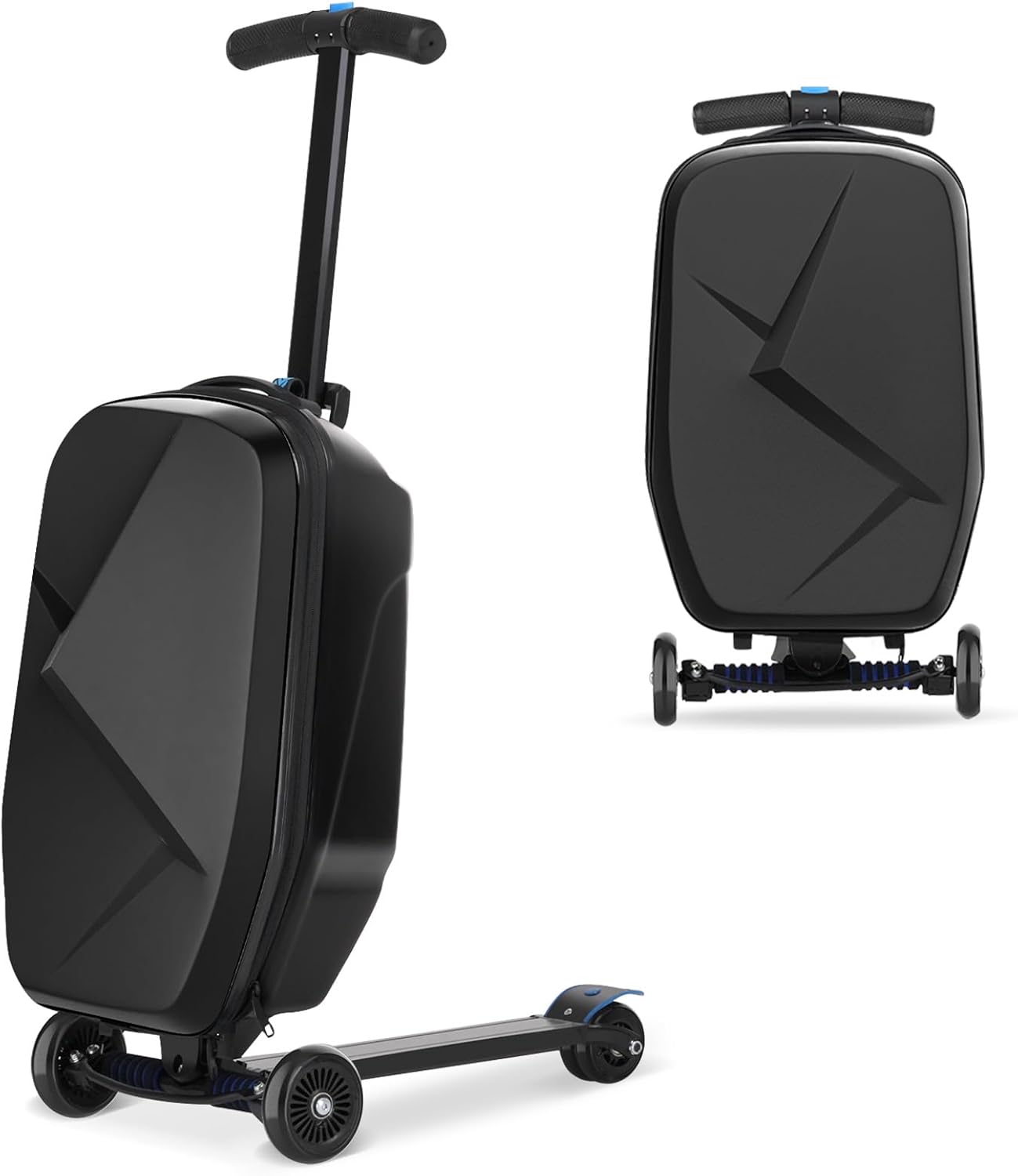 【STRONG & SAFE MATERIAL】The suitcase is made of waterproof and scratch-resistant PC material, which is wear-resistant and lightweight at the same time. The scooter is made of high-quality aluminium with a maximum load-bearing capacity of 240LB. The handle and pedal are made of anti-slip materials to ensure the safety of children during use.