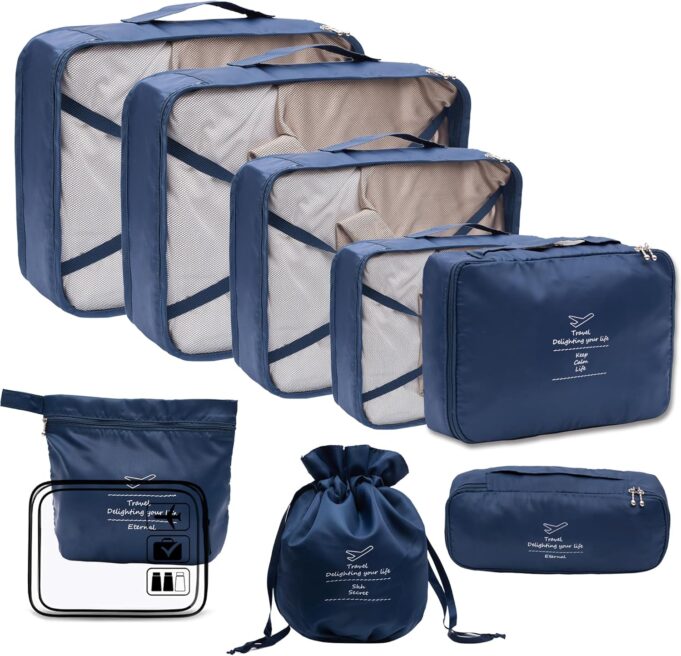 Optimal for Various Luggage Sizes: Perfectly tailored to fit 20″, 24″, and 28″ luggage, our packing cubes set is versatile and caters to all types of travelers. Whether you’re an overpacker or prefer a minimalist approach, these luggage organizer bags eliminate travel worries by keeping your belongings organized and maximizing space in your suitcase.