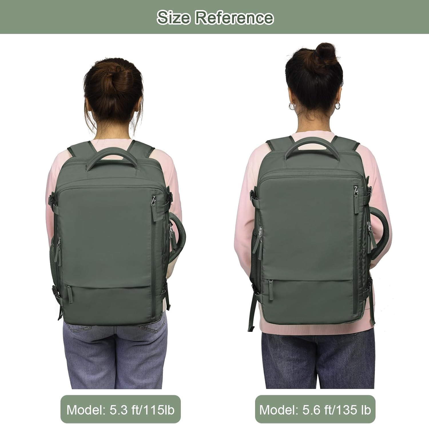 EXPANDABLE & LARGE CAPACITY: This extra large travel backpack with expandable feature offers you more packing capacity(Size: 17.32*12.2*6.7+1.57inch). Unzipping to get 40L storage then can easily hold packing cubes, make-up bag, outfits, camera bag and gear, which is ideal for men, women, weekend traveler, or occasional vacationer. This versatile backpack meets airline personal-item requirements