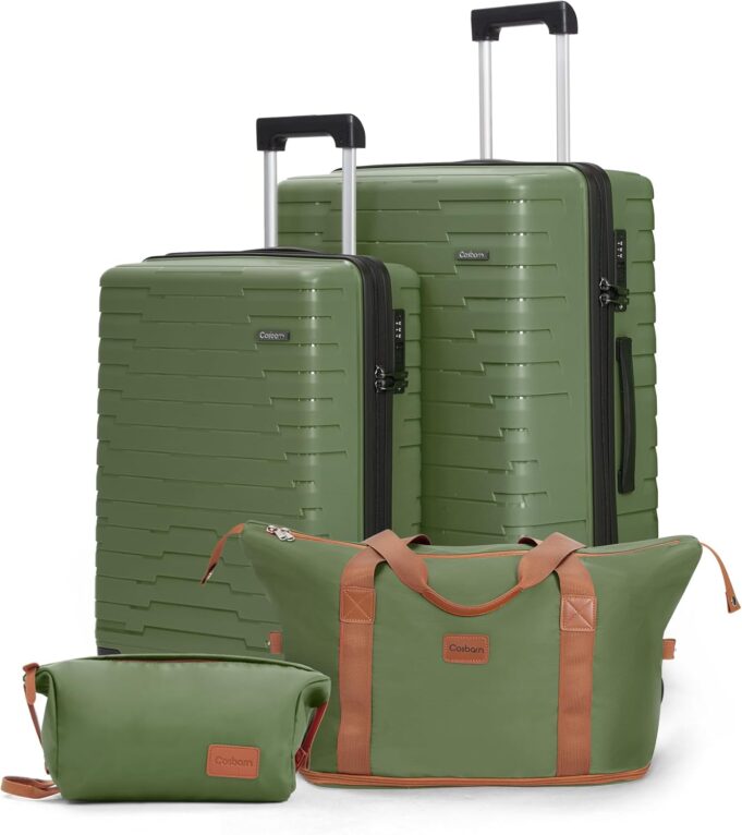 【High-quality PP Material】Cosbarn PP luggage sets feature high-quality PP material, known for its recyclability and environmental friendliness compared to ABS. The PP luggage boasts superior resistance to extreme temperatures, increased impact resistance, and a reduced risk of cracking, making it a durable and sustainable choice for travelers.