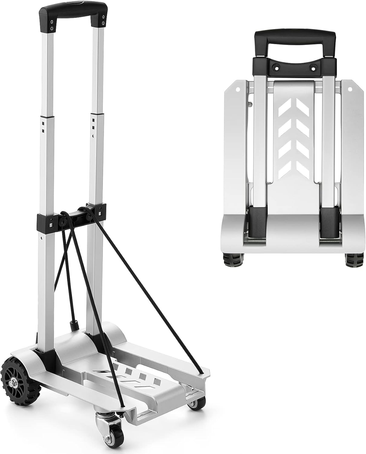 【Aluminum Alloy Material】Folding hand truck is made of 90% thickened aluminum alloy material, which makes the luggage cart stronger and more durable than other plastic panel carts, and has a longer service life. The maximum load-bearing capacity is 270 lbs, and the pull is stable when moving heavy goods, and not easy to shake.