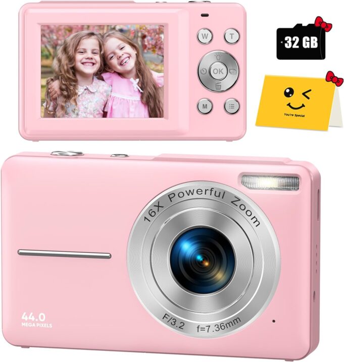 2024 UPGRADED DIGITAL CAMERA WITH BEST WISHES CARD : This camera uses the latest & advanced CMOS chip, helping you take & record the most exciting moments in 44 MP quality images & FHD 1080P quality videos,there is also a built-in fill light to help you take high quality pictures even in low light&dark settings.This camera is an ideal thing for kids, adults, and everyone. Includes a fun wishes card that is perfect for all celebrations including birthdays, Christmas, and any occasion!