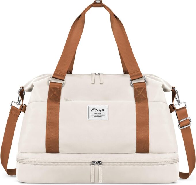 Wide Application Duffel Bag: The ETRONIK gym bag is a perfect reliable companion for both sport and travel. Crafted from high-quality, water-resistant nylon, it guarantees long-lasting durability. This multipurpose bag can be used as a gym bag, carry-on for flights, sports bag, overnight weekender bag, hospital bag, or a stylish beach companion.