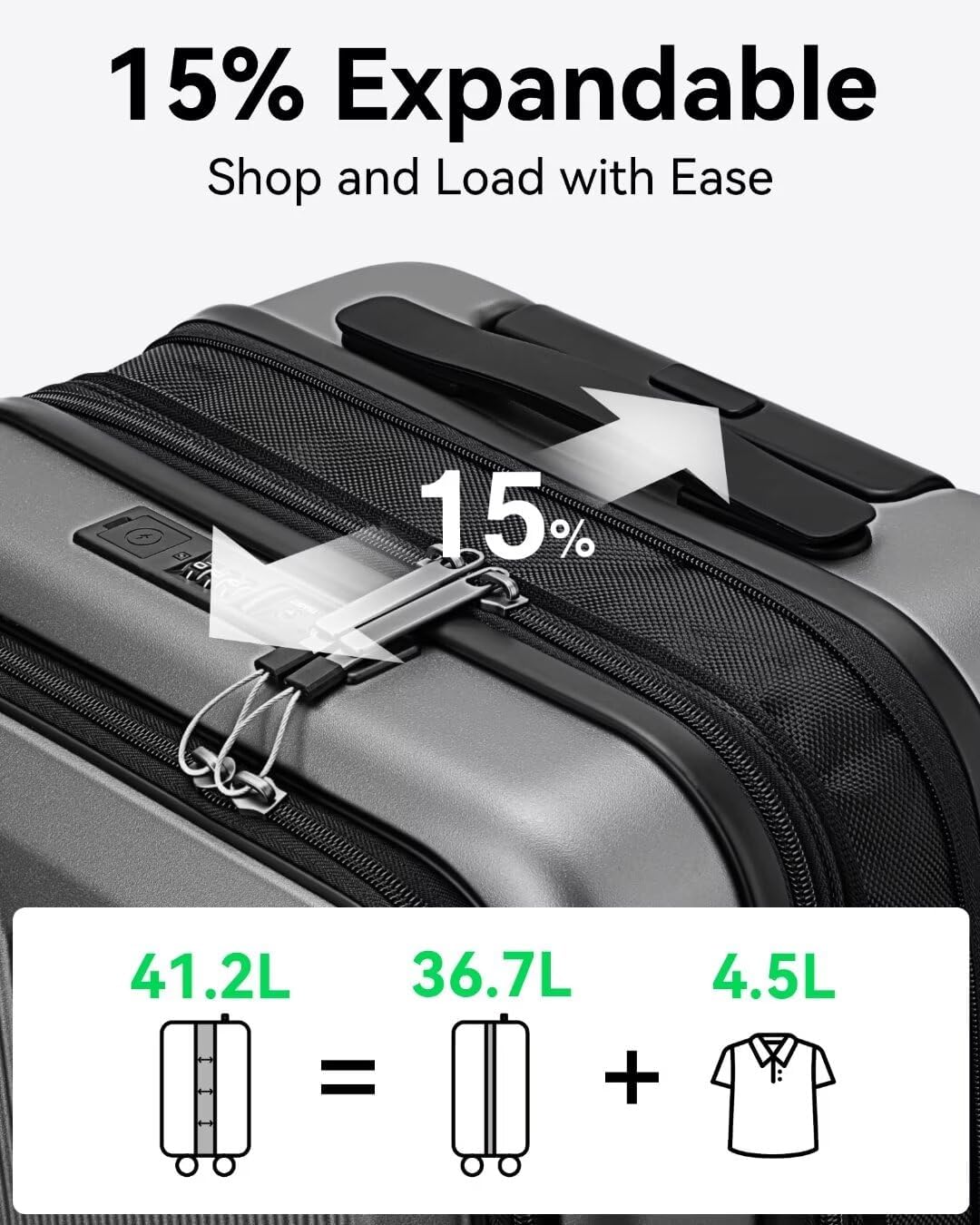 Expandable Capacity: Our black luggage boasts an expandable capacity with a zipper-released expansion mechanism, offering an additional 15% packing space. Effortlessly fit in those extra souvenirs or travel essentials, making the most of every journey.