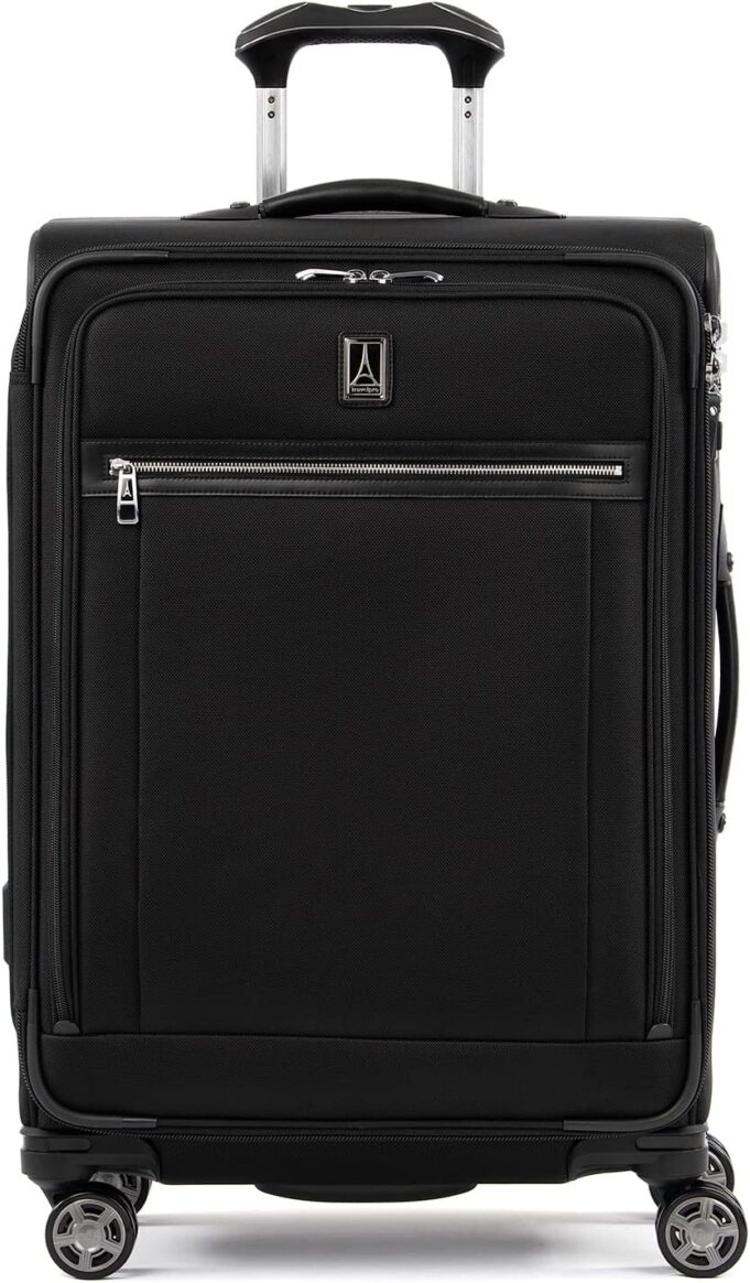 Finally, great looking checked luggage that is as functional and durable as it is stylish. The Platinum Elite 25″ Expandable Spinner is perfect for medium and long trips, accommodating everything you need, guarding against wrinkles with a built-in suiter and keeping everything organized under a deluxe tie-down system with integrated accessory pockets. Constructed with premium fabrics, leather accents and chrome zippers, this gorgeous bag also features a tip-resistant tapered expansion option that provides up to 2″ additional packing capacity. Integrated lock allows TSA authorities to safely unlock and lock suitcase for inspection when needed (default lock code is 0-0-0 to open). For effortless mobility, this 25″ suitcase is equipped with our Precision Glide system-eight MagnaTrac, self-aligning, 360-degree spinner wheels guided by an adjustable PowerScope extension handle with patented Contour Grip and rubberized touch points, ergonomically designed to be easy on the hands. Backed by Travelpro built for a lifetime limited warranty with our trusted companion promise which covers the cost of repair for damage from airline or other common carrier for 1 year.