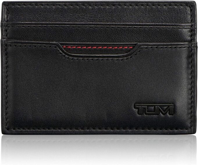 Modern understatement and handcrafted quality come together in the Delta collection of wallets and accessories. Made from soft, full-grain nappa leather, Delta designs feature interiors with red stitch detailing, a ballistic nylon spine, easy-accessfront card pockets and a bill section with leather back wall. This slim card case features an ID window on one side, card slots on the other and has a center section. Special feature: TUMI ID Lock™ is a proprietary technology incorporated into the design of this product that protects personal data encoded on most IDs, credit cards and passports. Comes in an elegant gift box.
