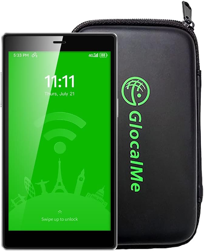 GlocalMe G4 Pro 4G LTE Mobile Hotspot Router & Protective Case, with US 8GB & Global 1.1GB Data, 5” Touch Screen LCD Display Portable WiFi Hotspot for Travel, No Contract, SIMFREE, Pocket WiFi Device