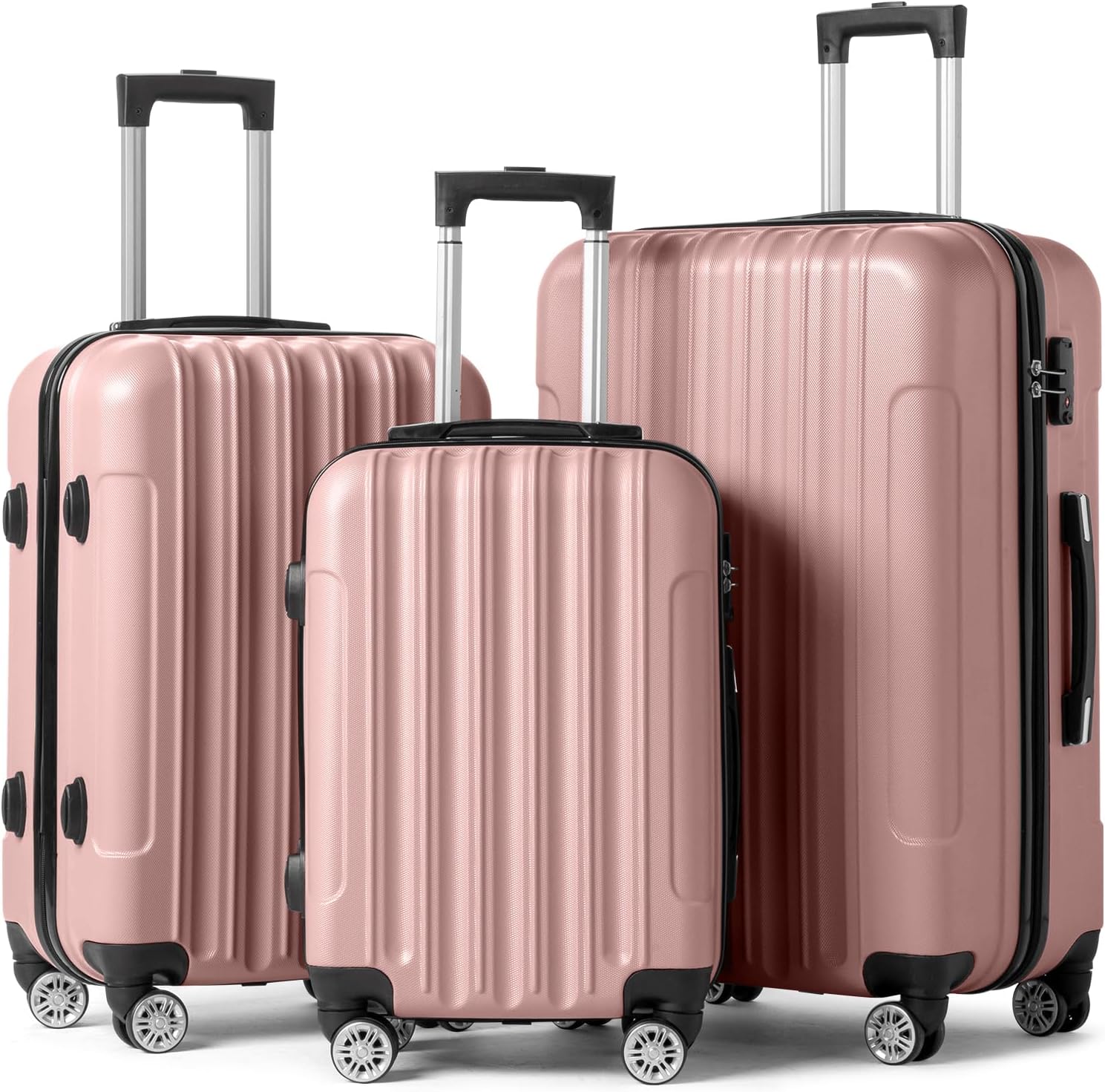 【Modern Appearance】The stylish and smooth vertical stripe design of the rolling luggage makes it more resistant to pressure and wear and brings a good mood to your journey. It includes four moulded side feet, they allow the luggage to remain upright even when standing on its side.