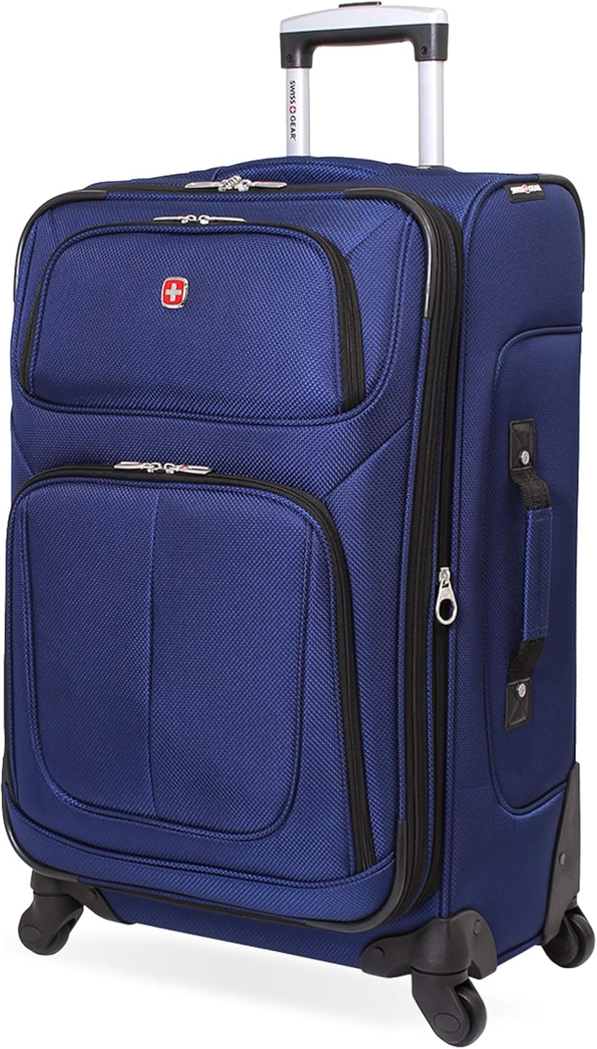 SwissGear Sion Softside Expandable Carry-On Spinner Luggage gives you an ample amount of packing space when needed. This rolling suitcase features a locking push/pull handle system and four 360-degree multi-directional spinner wheels for convenient portability. It is made from a durable, scuff-resistant polyester fabric and its interior is fully lined. This carry-on suitcase features adjustable luggage tie-down straps for securing garments in place, a removable zippered wet bag, a large mesh lid pocket, and a packing pocket for holding small items and accessories. It also includes two front panel pockets, a built-in ID tag, and padded top and side handles. At SwissGear, we continue to ensure whatever you need travels easily, safely, and stylishly with you. Great for a family trip or business travel.