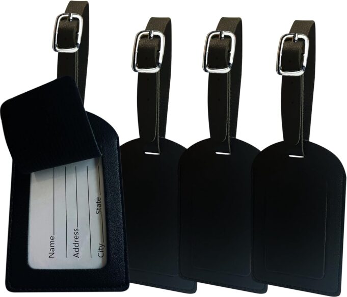 4pcs Leather Luggage Tags Travel Bag Labels with Name ID Card Perfect to Quickly Spot Luggage Suitcase Baggage Handbag School Bag Suitcase Instrument Tag Label Privacy Protection Black