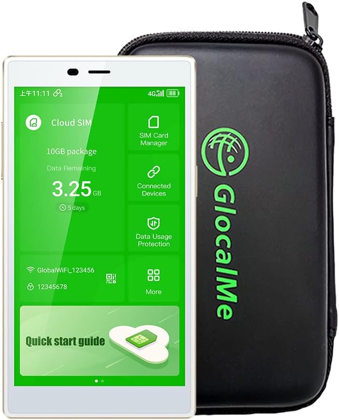 GlocalMe G4 Pro 4G LTE Mobile Hotspot Router & Protective Case, with US 8GB & Global 1.1GB Data, 5” Touch Screen LCD Display Portable WiFi Hotspot for Travel, No Contract, SIMFREE, Pocket WiFi Device