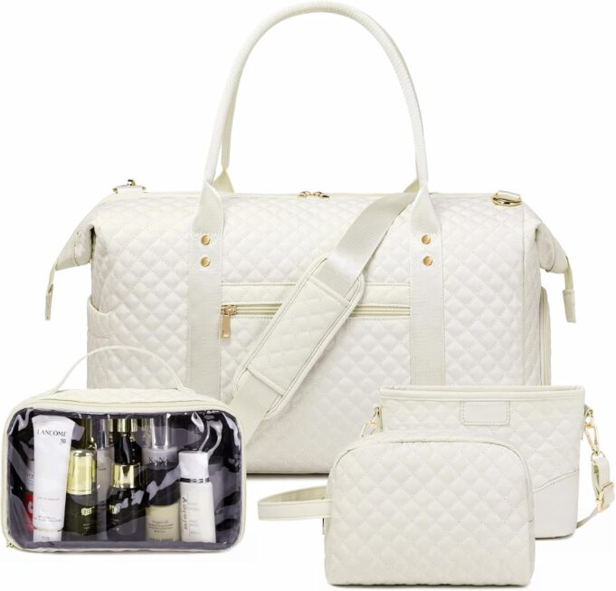 Upgrated 4 PCS Set : The travel weekender bags comes with 1 duffel bag+2 extra little makeup bag+1 small shoulder bag.Perfect for organize your clothes and cosmetics separately, which can be your hospital bag essentials.