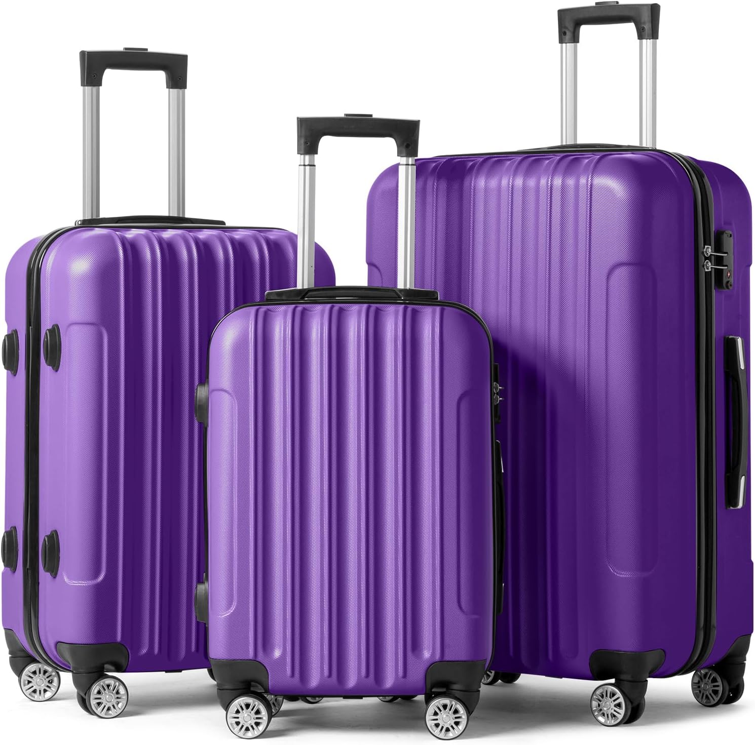【Modern Appearance】The stylish and smooth vertical stripe design of the rolling luggage makes it more resistant to pressure and wear and brings a good mood to your journey. It includes four moulded side feet, they allow the luggage to remain upright even when standing on its side.