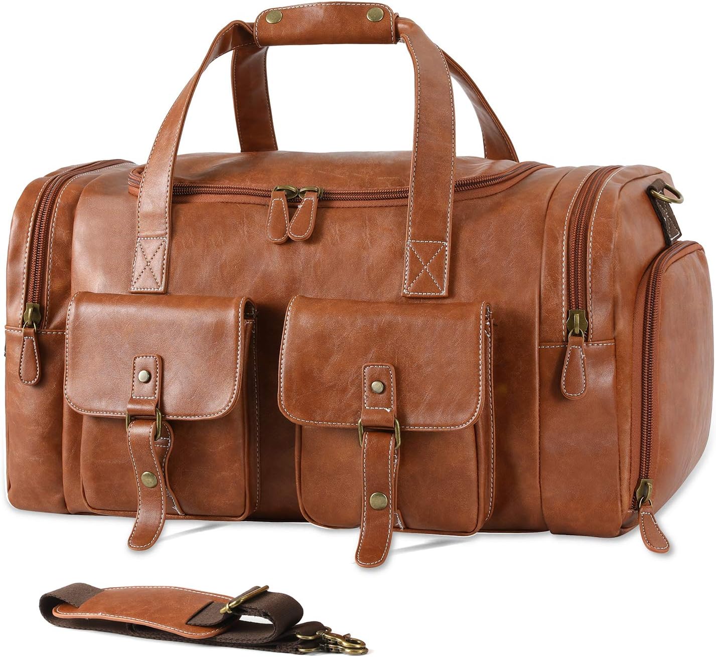 ♘EASY & COMFORTABLE to USE – the bag owns an oversized main compartment to stash your travel necessities for 2-3 day trip ; 2 External Front Pocket with Leather Cover, 1 Side Zippered Pocket, 1 side Zippered Shoes Compartment, 1 Zippered Pocket on the end of bag; The strap is built along with an adjustable thick & broad cushioned pad, which helps make your shoulder more relaxing and free of pains and less fatigue.