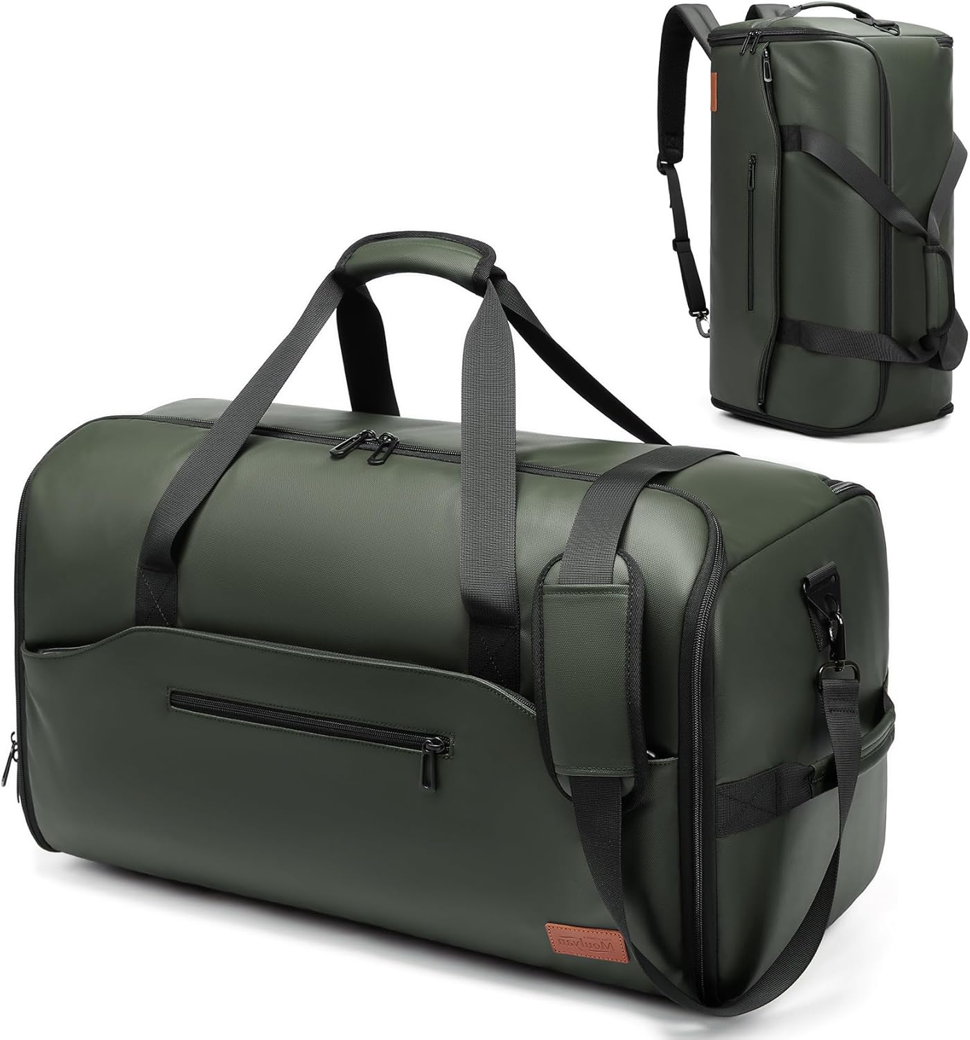 3 in 1 Convertible Garment Bag: This garment travel bag combines the feature of a garment bag and a travel duffle bag. The Convertible Garment Bag can be used as a tote, shoulder bag, casual bag, and backpack. With extended space to keep your suits and dress neat and wrinkle-free for a business trip, it can turn out to be a travel duffle bag for vacation. Moulyan Garment Duffle Bag is not only a Overnight Travel Weekender Bag, but also a great Duffel Hanging Clothes Bag