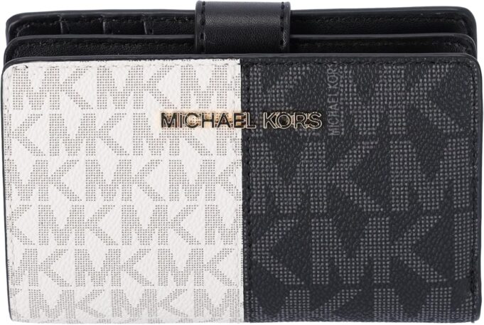 Logo-print canvas Silver-tone hardware 5.25″W X 3.5″H X 1.25″D Interior details: zip pocket, 3 slip pockets, 6 card slots, ID window Lining: 100% polyester Snap fastening