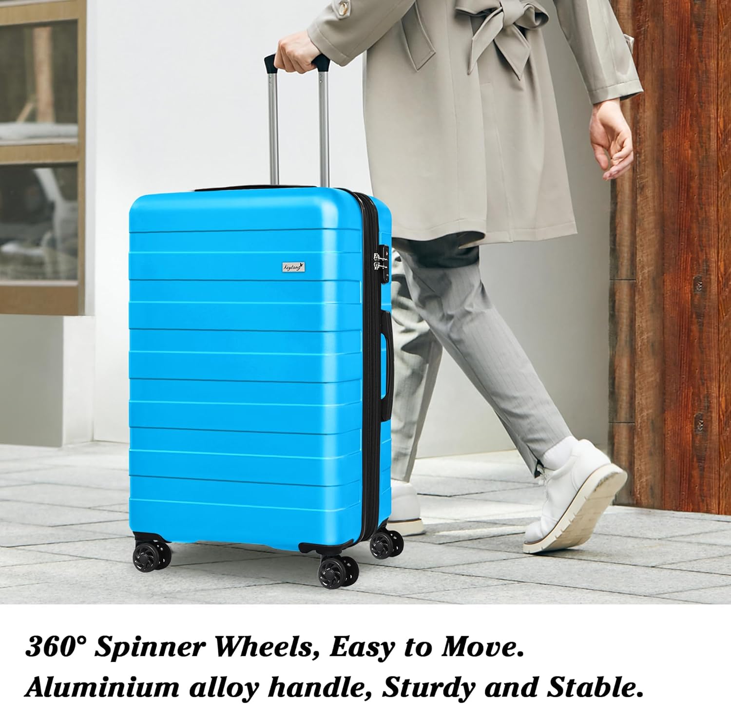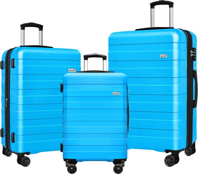 Upgraded luggage sets include 20″ carry-on luggage, 24″ checked Suitcase, 28″ large luggage. Stylishly designed for effortless travel.
