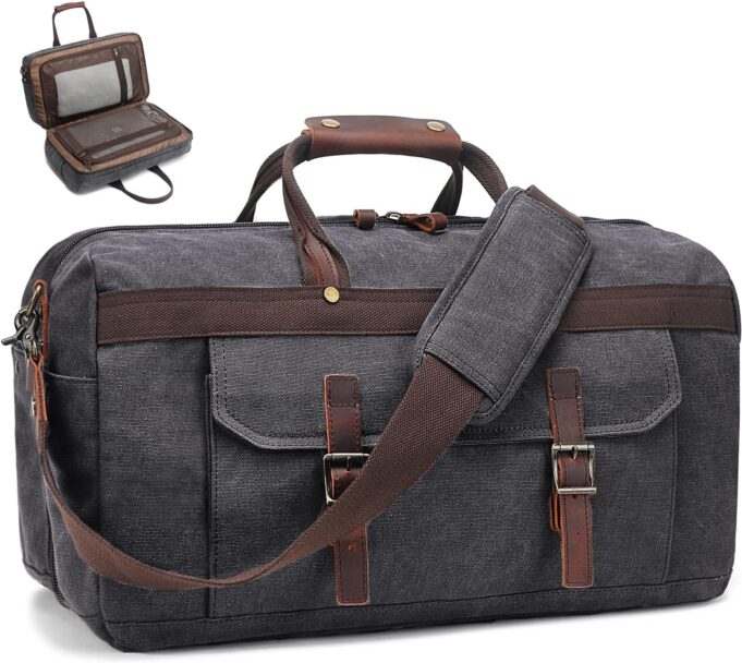 BUILT TO LAST: Size in 20″L * 11″W * 11.4″H that meets airline carry on luggage restrictions, the travel duffel bag is made of waterproof cotton canvas and genuine leather, trimmed with metal SBS zippers and classic bronze tone hardware, which offers the durability for long-term use. Packing Up Your Stuff All Together.
