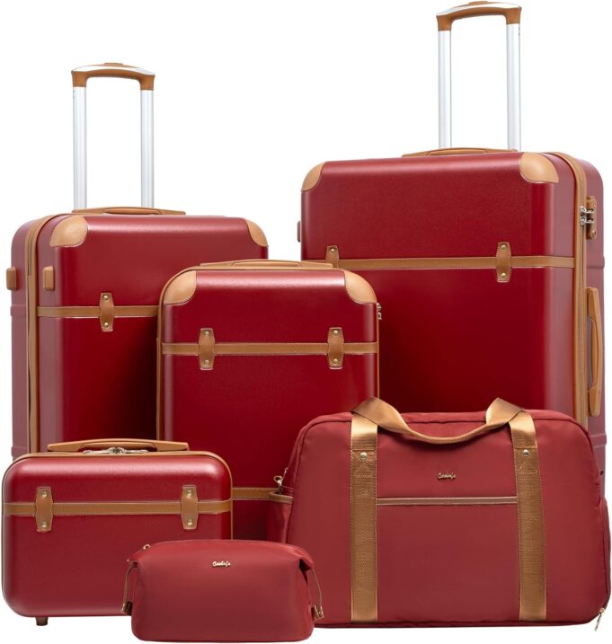 Experience unmatched travel versatility with our stylish luggage set. The six-piece set includes a range of luggage sizes ( 20’’, 24’’, and 28’’), a 13’’ cosmetic case, a convenient weekender travel bag, and a toiletry bag. The three-piece set offers a 20’’ carry-on luggage with a travel duffel bag (or backpack) and a toiletry bag.