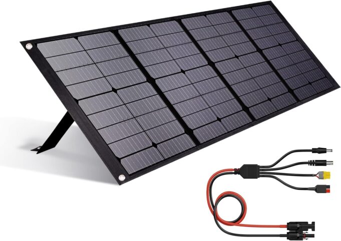 【HIGH COMPATIBILITY】- HQST 100w foldable solar panel comes with a 4-in-1 solar cable is compatible with most solar generator. The 8 mm DC connector is compatible with Goal Zero Yeti and Jackery Explorer; the XT60 is compatible with Bluetti and EcoFlow; the Anderson port is compatible with Jackery and Anker; the 5.5*2.1 mm (DC5521) is compatible with Rockpals.