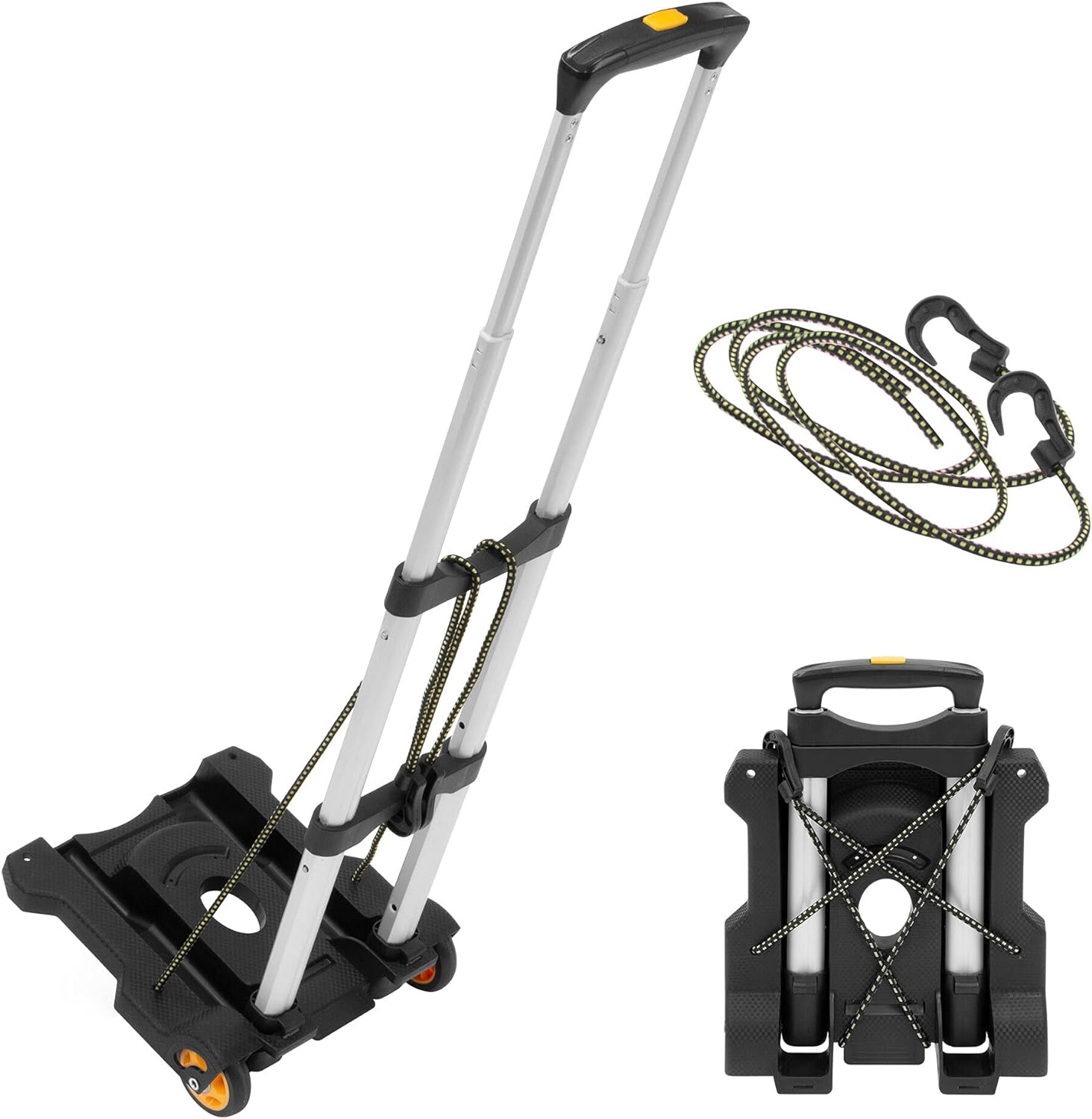 Versatile Folding Hand Truck: This luggage roller cart features an integrated bungee cord allowing you to secure a variety of different items for transit. Great for packages, luggage, suitcase, moving boxes, everyday work supplies, teaching supplies, sports gear and more.