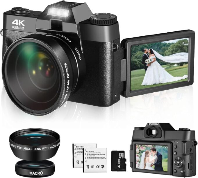 【𝟐𝟎𝟐𝟒 𝐔𝐩𝐠𝐫𝐚𝐝𝐞 𝟒𝐊 𝟒𝟖𝐌𝐏 𝐀𝐔𝐓𝐎𝐅𝐎𝐂𝐔𝐒 𝐃𝐈𝐆𝐈𝐓𝐀𝐋 𝐂𝐀𝐌𝐄𝐑𝐀】 – The 4K digital camera delivers a high bit rate of 30FPS without missing all details, The Video camera featuring can capture ultra HD 48MP images and record HD 4K resolution video,support time-lapse,slow motion and pause functions,making the video more diverse and creative.Blogging camera can better help you capture every excellent moment while vlog recording.4K camera boasts advanced Auto-Focus for swift, precise, and clear subject capture, consistently sharp results, great for outdoor photography.With the latest upgraded chip to ensure the camcorder images more high-definition, more realistic.