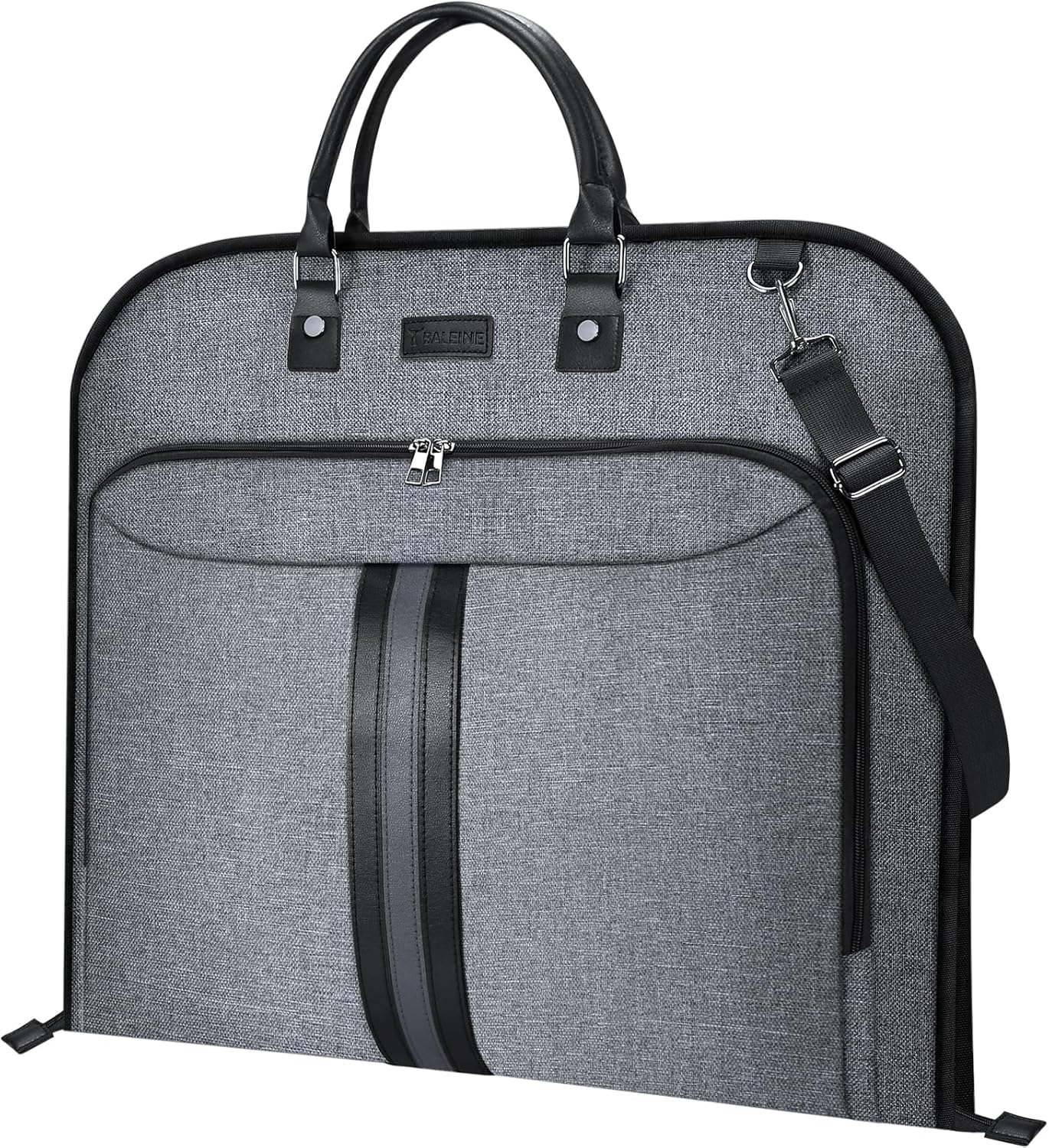 [Practical Design] This garment bag for suit is more than just a protective layer for your clothes. Its foldable design ensures that it compacts down efficiently, taking minimal storage space. Moreover, you can also store small items in the front pocket of the travel garment bag. The PU handle, complemented by an adjustable shoulder strap, ensures ease of transportation during travels.