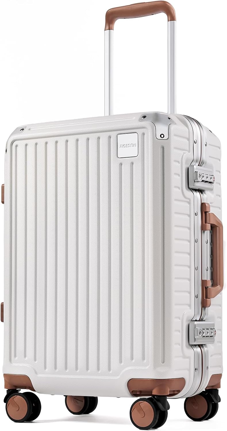 [360° spinner wheels, 8 wheels in total] Hard shell carry on suitcase with quiet and durable double spinner wheels, which ensure excellent directional control and riding effortless on multiple surfaces. Adjustable 3-level 100% pure aluminum telescoping handle allow you to quickly maneuver in tight spaces. Luggage is not a burden anymore, enjoy a truly relaxing trip with FIGESTIN carry on Luggage.