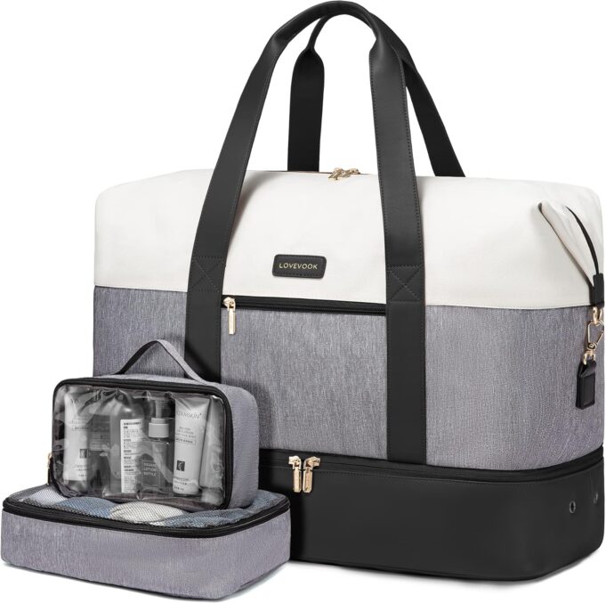 Customers like the roomy design, build quality, and style of the tote bag. They mention it’s well-made, has great compartments for shoes and toiletries, and looks new. Some are also happy with the value for money and zipper quality. However, some customers have mixed opinions on the weight.