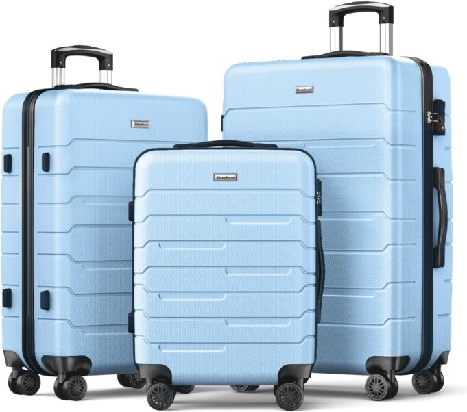 Design: The 3-piece luggage sets have 8 spinner wheels make them roll freely and smoothly. 3 step adjustable telescoping handle allows you to set it at different heights to meet your needs.