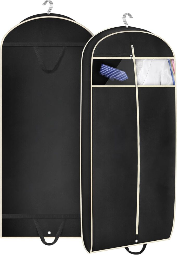 The 43″ garment bag has 2 handles and a sturdy metal grommet that can be folded in half, making it easy to carry on a car or airplane
