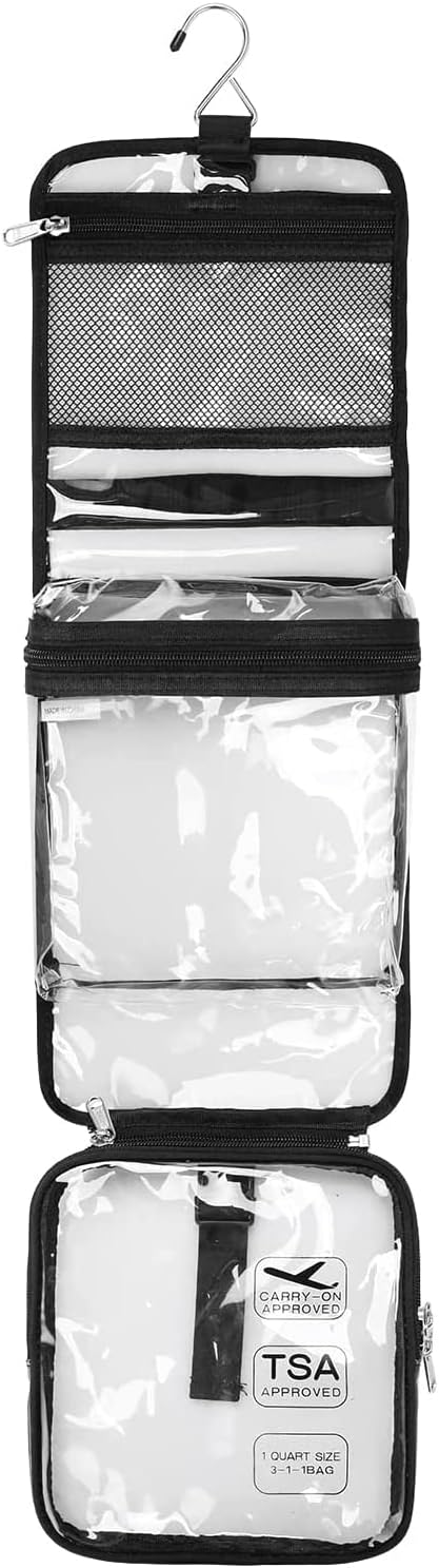 Removable TSA Approved Toiletry Bag: This compact toiletry bags for traveling women with detachable quart size travel bag tsa approved, complies with TSA 3-1-1 airline rules and regulations, making it easy and fast to get through airport security. You can use this clear toiletry bags for traveling as a separate cosmetic bag or for everyday items like headphones, keys, and more