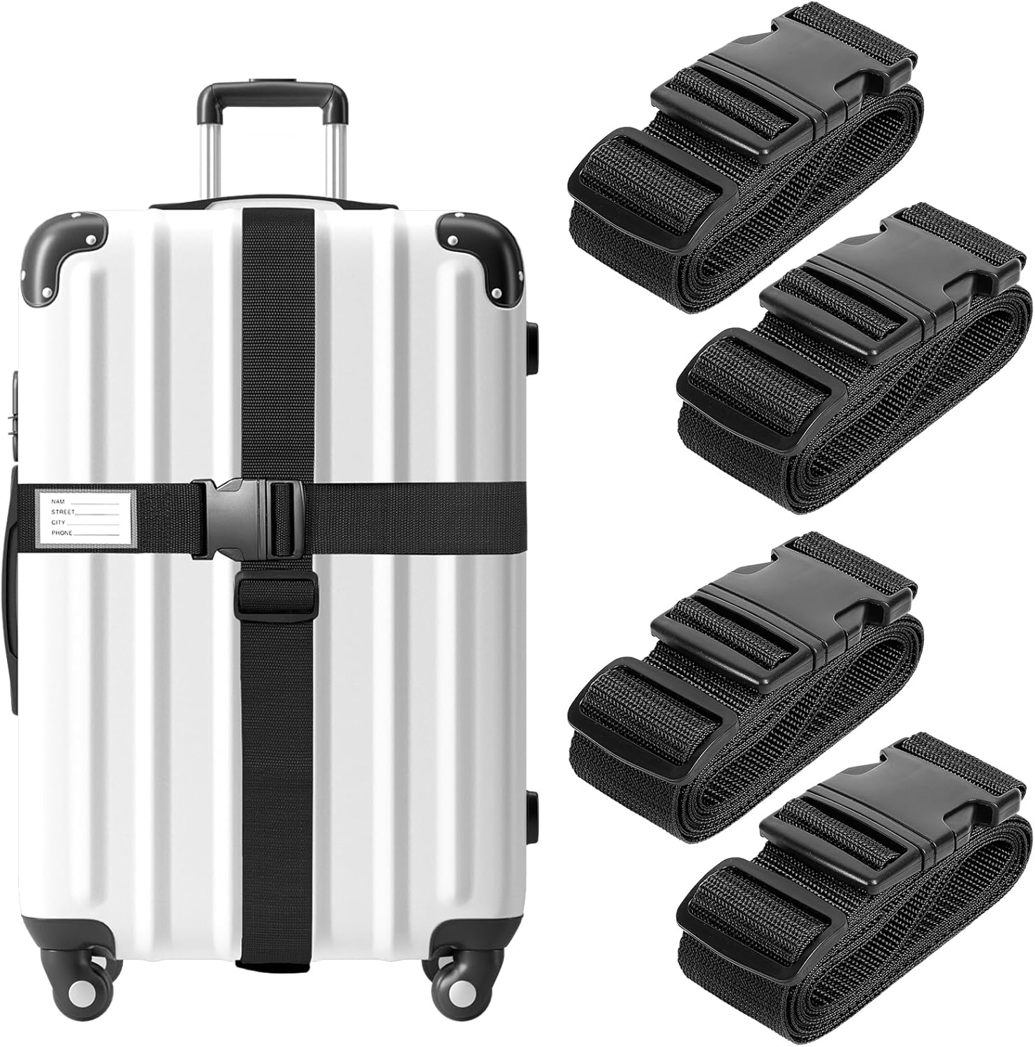 Adjustable Length: The length of Luggage straps for suitcases can be adjustable. Total Belt Length: 78 inches/200cm; Belt Width: 2 inches / 5cm. You can customize the strap length according to your specific needs. Suitable for most common-sized suitcases and bags.