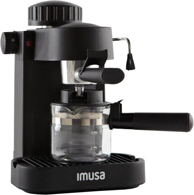 The IMUSA GAU-18202 Electric Espresso Maker allows you to be a barista at home! You can have fresh espresso in minutes or you can create a homemade creamy cappuccino using the milk frothier. This beautifully designed unit allows you to prepare up to 4 cups of espresso at a time, and has a removable drip tray for easy clean up. Also features a permanent removable filter basket for the espresso, and the durable plastic exterior protects you from a hot interior.