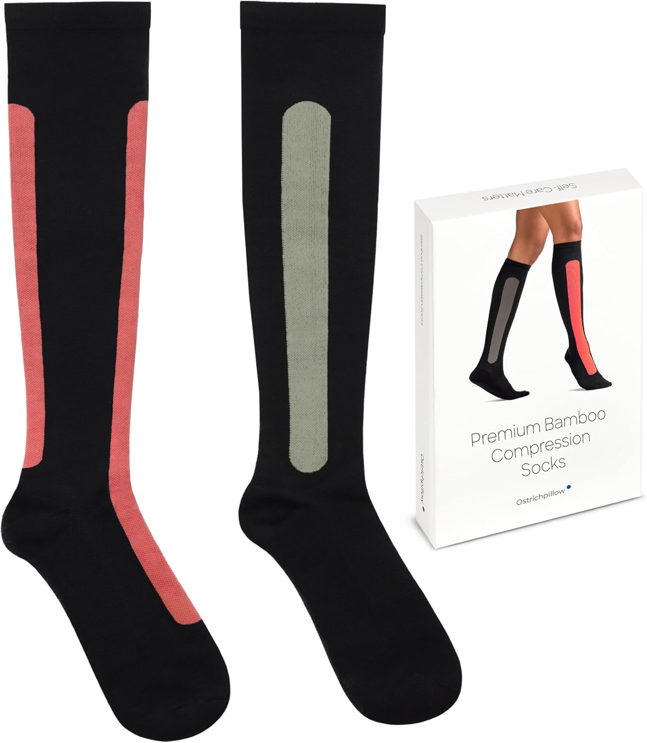 SMART CIRCULATION – Regular wear of Ostrichpillow compression socks boosts circulation, reduces swelling and inflammation in the legs, and helps soothe Restless Leg Syndrome. Also recommended for pregnant women and those enduring extended hours on their feet or seated. BREATHABLE & ODOR FREE – Made primarily from bamboo fibers, our socks are completely breathable, ensuring no odors and keeping feet fresh. The bamboo element also offers softness, durability, and is sustainable. ECO-FRIENDLY MATERIALS – Beyond bamboo, our socks blend in recycled polyester and nylon. The seamless blend ensures flexibility and comfort, supporting the health of your legs and the planet. SPORT & DAILY USE – Featuring special reinforcements on the heel and toe, these compression socks are perfect for both athletic activities and daily wear. Whether you’re running a marathon or running errands, your feet are in the best care. MEDICAL & PREVENTIVE – Highly recommended for professionals such as doctors, nurses, teachers, and travelers. They also provide essential support for long flights.”