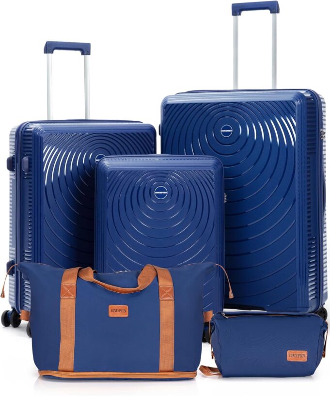 5 PIECE LUGGAGE SETS – The luggage sets of 5 pieces offers 20″ carry on luggage,24″ medium checked luggage,28″ large check-in suitcase, an extended duffel bag, and a toiletry bag. Nestable for easy storage, the multi-functional suitcase set can meet all your travel needs.