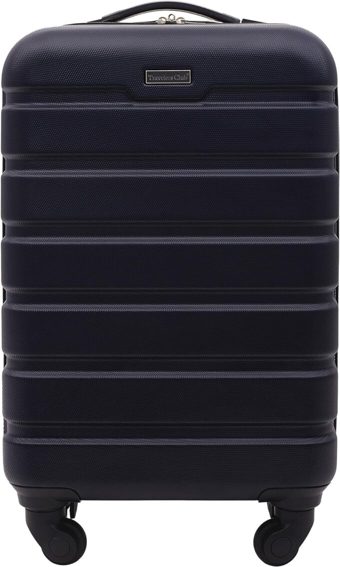 Introducing the Travelers Club Harper Luggage, a reliable and stylish companion for your travels. Crafted with a durable ABS Hardshell material, this luggage ensures exceptional impact resistance, safeguarding your belongings from bumps and drops. Choose between the convenient 2-piece set, which includes a 28″ check-in suitcase and a 20″ carry-on, or opt for the compact 20″ carry-on size. With its four-wheel design, navigating through busy airports and streets becomes a breeze, providing smooth and effortless maneuverability. The push-button recessed locking handle system adds to the convenience, allowing you to easily extend and retract the handle with a simple push. Not only is the Travelers Club Harper Luggage functional, but it is also lightweight, ensuring you can pack more without exceeding weight limits. Its scratch-resistant surface helps maintain its sleek appearance, even after frequent use. Choose the Travelers Club Harper Luggage for a combination of durability, versatility, and style that elevates your travel experience.