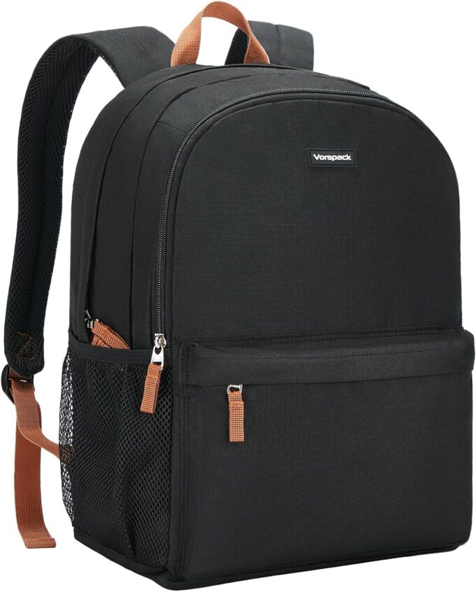 Large backpack: Vorspack black backpack measures 17 x 12.2 x 6 inches, which is spacious enough to hold your daily essentials. The bookbag features separate compartments and pockets, allowing you to keep your belongings neatly organized