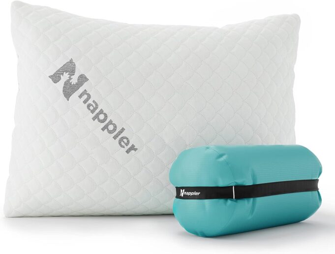 ✅EASY TO CARRY AND KEEP CLEAN: Nappler camping & travel pillow is very lightweight and comes with a carry case to keep it clean. The snap loop in the back of the pillow makes it easy to clip it to your luggage or hang it in the car.
