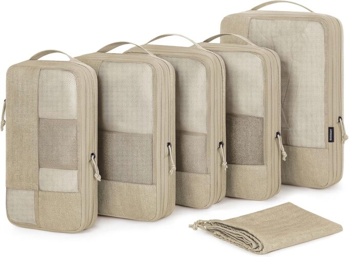 WHAT WE LIKE: Some of us travel with capsule wardrobes and others pack multiple outfit options for everyday of the week. If your packing style is more in line with the latter, you no longer need to sacrifice style for space. These packing cubes compress more garments into one bag so you can minimize your luggage size without ditching that extra pair of shoes. The set of six includes five cubes in sizes small, medium, and large, and a bonus shoe bag for organizing your footwear.