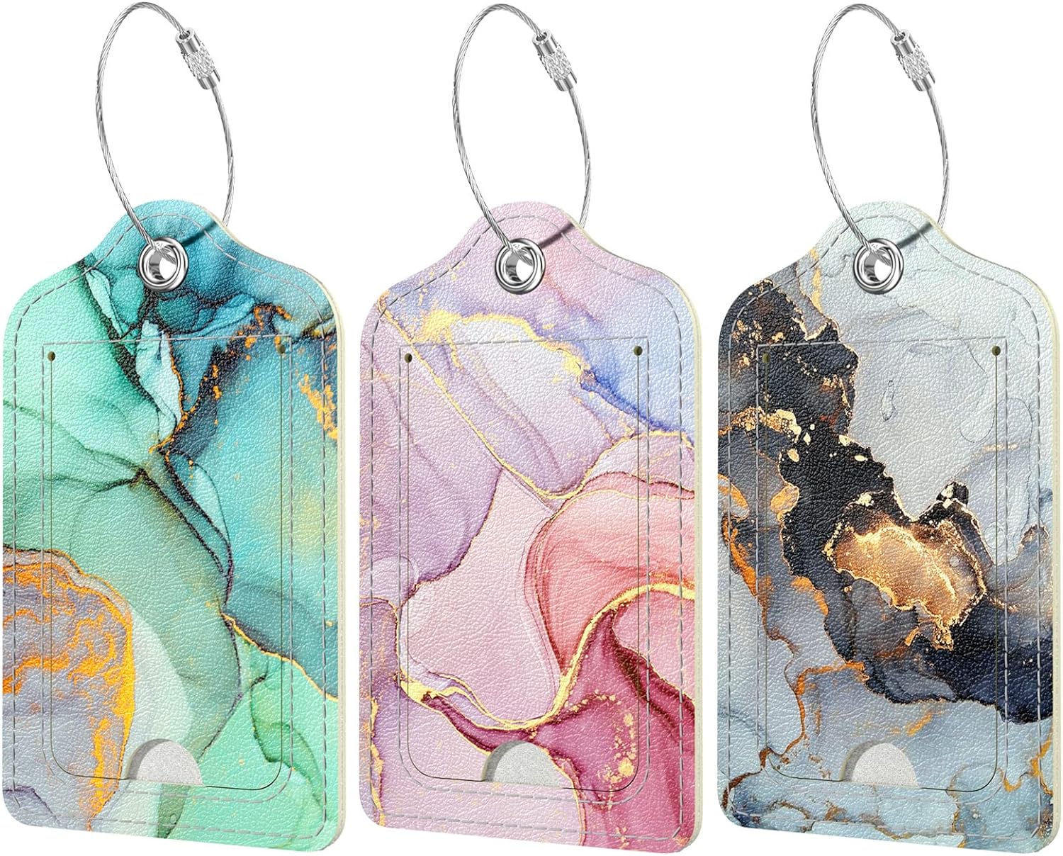 【Personalized Luggage Tag】Travel luggage tag with unique design, simple but fashionable, it matches perfectly with your youth and vitality & individuality. Set of 3 Pcs, available in multiple style, boho, floral, marble, beach.