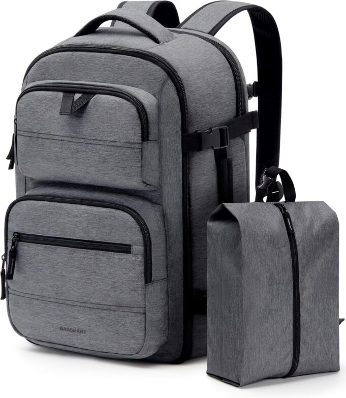 Spacious & Multi-Compartments: BAGSMART Travel Backpack is a versatile carry on backpack that features a generous size of 18.1″ x 12.6″ x 7.5″ providing a whopping 40L capacity. With multiple compartments including a Top external zipped pocket, zippered bottom pocket, front zippered pocket, separate laptop compartment, and bottle pocket, this backpack is a perfect companion for travelers seeking efficient storage solutions