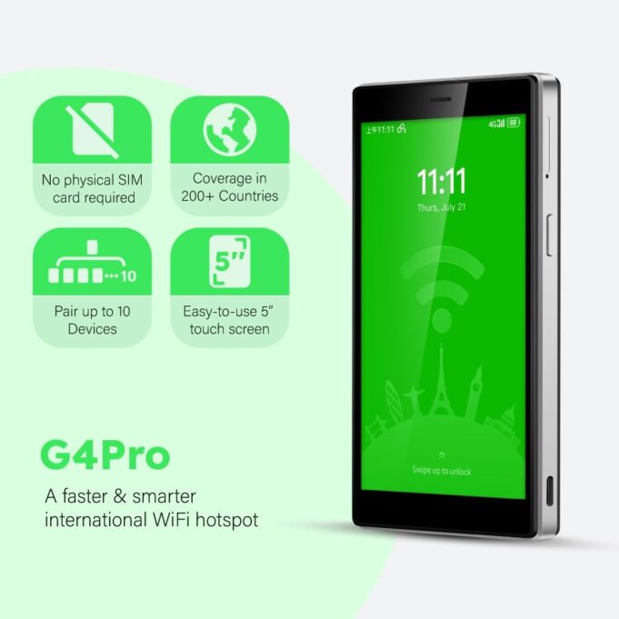 【Portable WiFi for Global Travel】Keep seamless connectivity with GlocalMe, your pocket-friendly companion that offers secure and reliable mobile WiFi hotspot coverage in over 200 countries. Our patented CloudSIM technology porvides smart local network auto-selection for optimal internet signal, which makes it ideal as a hotspot device for your global travels or business trips. For example, there are AT&T, T-Mobile and Verizon coverage at the same area, AT&T has poor network condition while Verizon has the best, G4 Pro will select Verizon for you to use. Say goodbye to interruptions and lags so your life stays seamlessly integrated whether online or off.