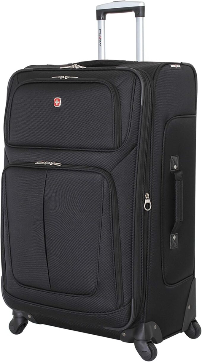 SwissGear Sion Softside Expandable Check-In Spinner Luggage gives you an ample amount of packing space when needed. This rolling suitcase features a locking push/pull handle system and four 360-degree multi-directional spinner wheels for convenient portability. It is made from a durable, scuff-resistant polyester fabric and its interior is fully lined. This check-in suitcase features adjustable luggage tie-down straps for securing garments in place, a removable zippered wet bag, a large mesh lid pocket, and a packing pocket for holding small items and accessories. It also includes two front panel pockets, a built-in ID tag, and padded top and side handles. At SwissGear, we continue to ensure whatever you need travels easily, safely, and stylishly with you. Great for a family trip or business travel.