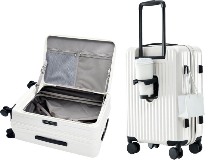 INNOVATIVE FRONT OPENING: Experience effortless packing with our unique top-opening design. Access your belongings with ease, save space, and enjoy a more organized travel experience. Say goodbye to the inconvenience of traditional side-opening luggage.